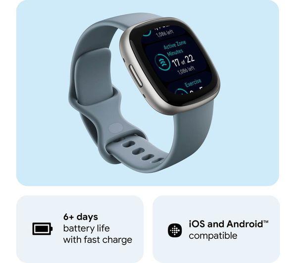• FITBIT Versa 4 Smart Watch - Waterfall Blue & Platinum