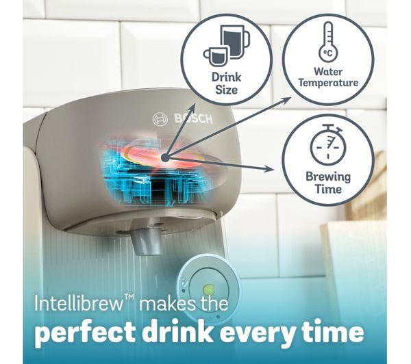 Why put up with disappointingly weak coffee? Give it some pep with the IntensityBoost on this Tassimo Finesse coffee machine. It'll give your coffee the extra kick you're craving. You'll always enjoy balanced taste and aroma with Intellibrew technology. It uses just the right amount of water and the ideal temperature. And T DISCs have over 60 varieties of coffee to choose from. Enjoy delicious blends from Costa, Kenko, L'OR and many others.